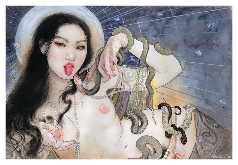 Snake and Peonies by Aimè...